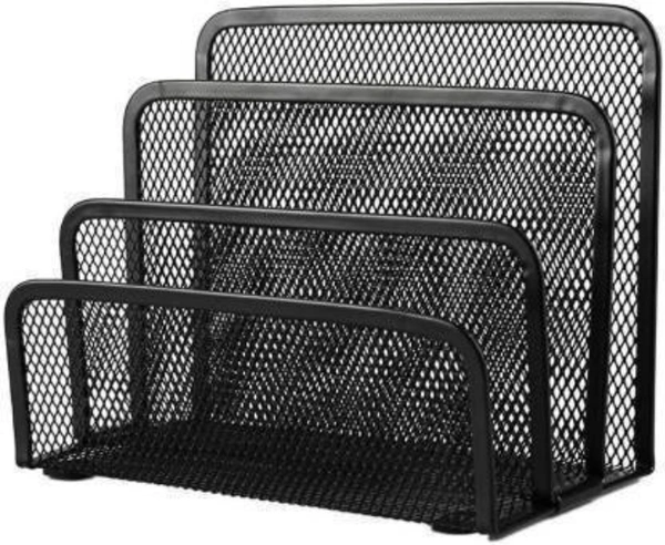 Holds documents, scratchpads, records, envelopes, address books etc. Convenient for office, school and home use. Great for organizing files, envelopes, mail & bills. Perfect for your office, would look very nice on your desk. Made of metal, relatively strong and durable to use. Help put and classify the file, note books, cards etc.