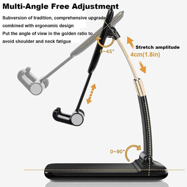 Adjustable and Foldable Desktop Mobile Stand | Compatible with All Mobile Phone and Tablets for Desk Bed Table Office Video Recording Take Pictures C-A120402