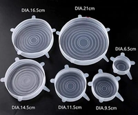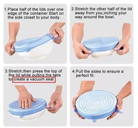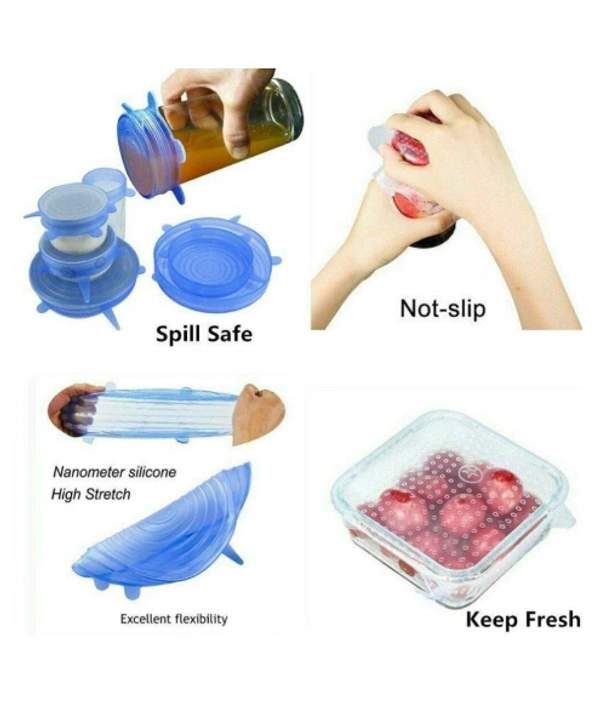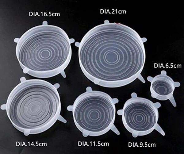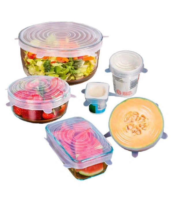 SILICONE COVER - These set includes 6 transparent silicone sleeves of different sizes. Because they are stretchable materials, food lids are easy to fit into most bowls, containers, cups, mugs, cans, jars, and you can even use them to cover your half-cut melon or watermelon.