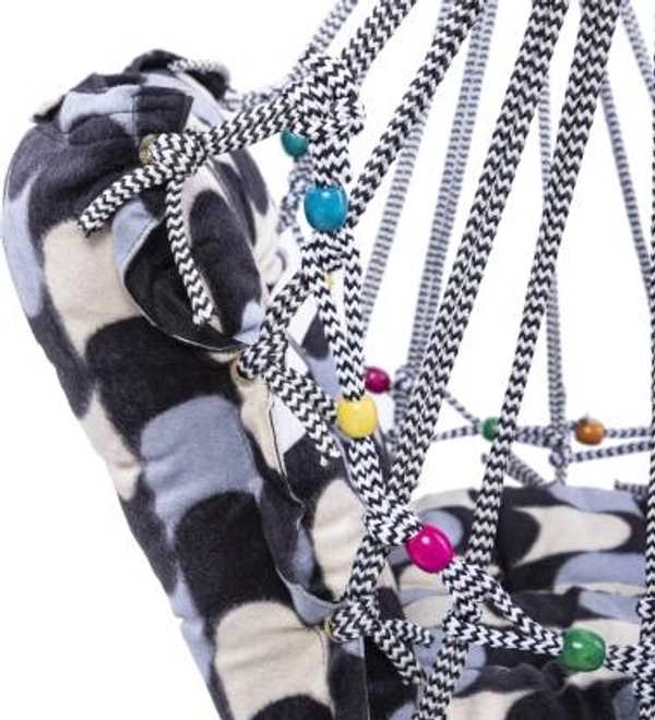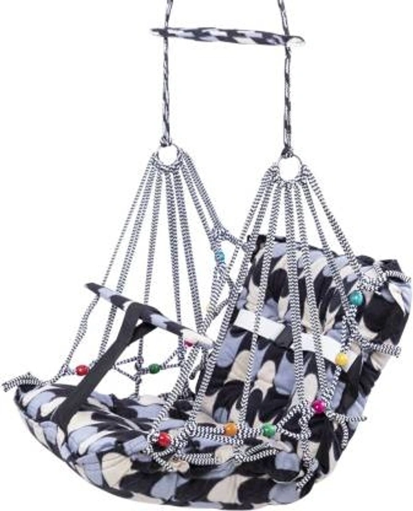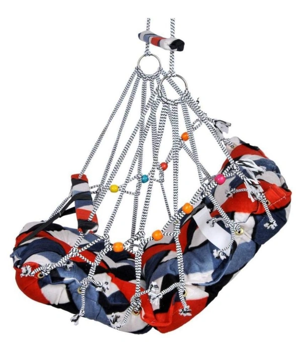 - PRODUCT DETAILS Material: Cotton fabric, Fillings: Cotton, ( Color And Design Will Be Random ) || Size: Sitting side: 15x15 inch & Back support side: 15x15 inch, Thickness: 4 inch || Age Range: 1 to 3 years || Complete Hanging Accessories: Main unit, Hook, Rope & upper side balancing stick.