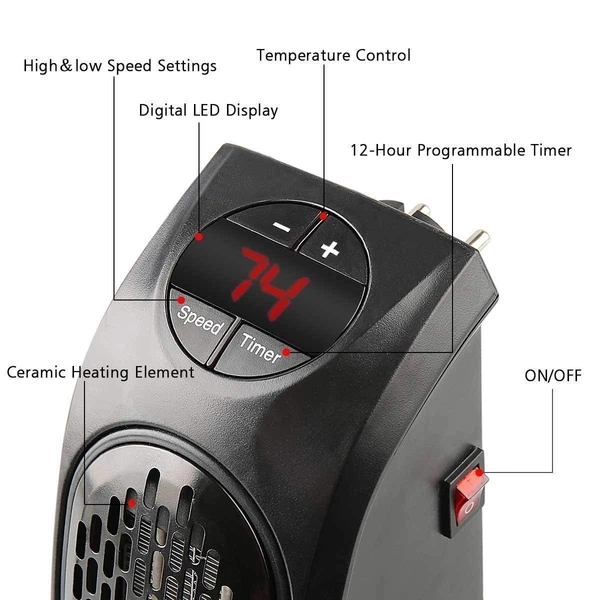 - DIGITAL TEMPERATURE DISPLAY : The Handy Heater features a digital temperature display where you can adjust to your ideal temperature. It also features a programmable 12-hour timer.