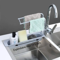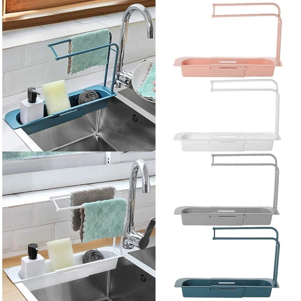 - ➤【Extensible Design】: Telescopic sink storage rack adopts a humanized movable retractable device, and the size can be adjusted by you. We adopt the design of a towel rack to dry the towels for you, saving your kitchen space, and the bad feeling of towel placement .(Extensible Length: 39.5 cm - 50 cm/15.55 in - 19.5 in )