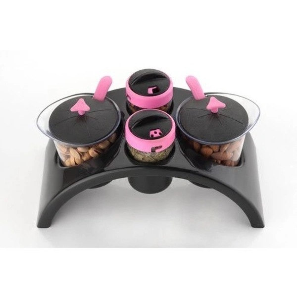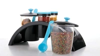 - Provided with easy to use perforated spoons & container lid with knobs for easy access.