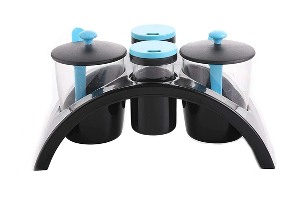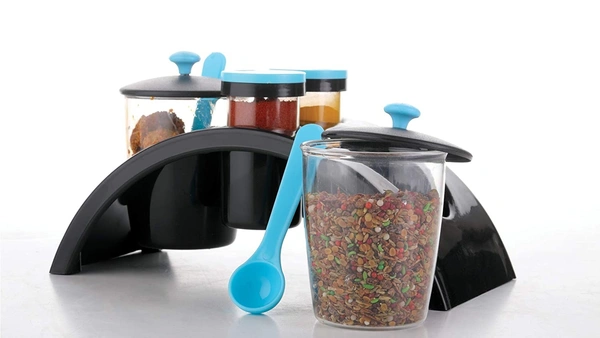 Kitchen Storage set 2x2 Spice Jar & Pickle/Achaar Container Set, Aachaar Spice Pickle Container Storage Set, Salt and Pepper Jar with Lids and Tray Holder for Dining Table (Muticolour)