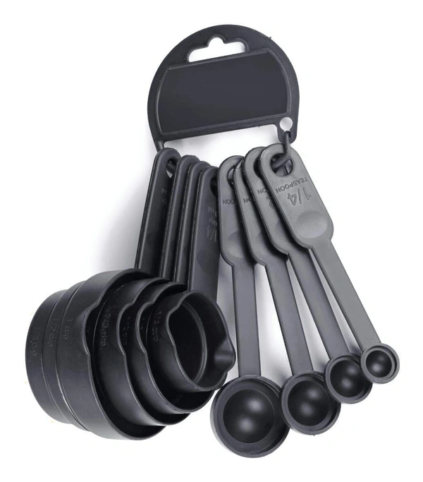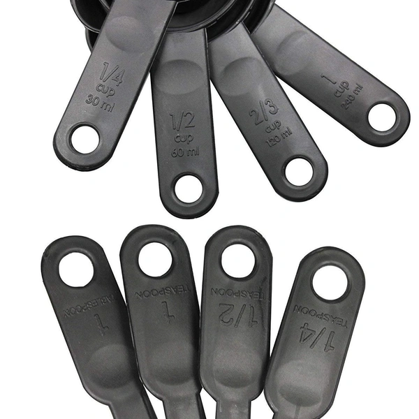 - This 08 Piece Set (4 Measuring Cups And 4 Measuring Spoons) In Different Gradated Sizes & Clearly Mentioned Size In Different Units on Each Cup & Spoon