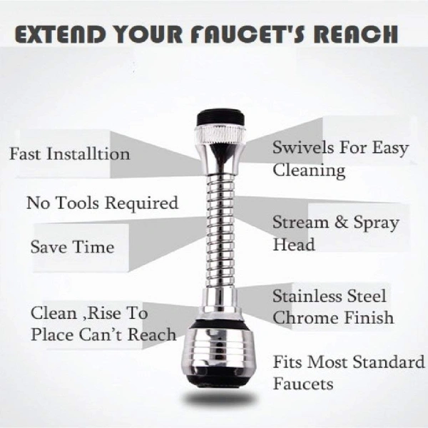 Turbo Flex 360 Degree Flexible 6 Inch Extension Stainless Steel Jet Stream/Water Saving Faucet
